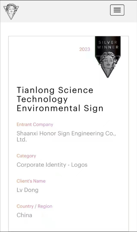 近日,由美國國際獎項協會International Awards Associates(IAA)主辦,全球創意領域極具影響力之一的繆斯設計獎結果揭曉,天隆科技VI標識中的環境標識榮獲2023年度繆斯創意設計銀獎。