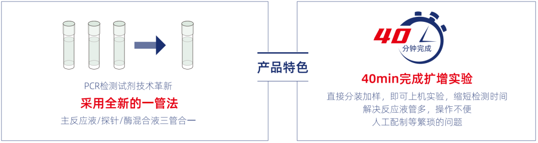 天隆科技猴痘病毒核酸檢測試劑基于熒光PCR平臺,采用一管法檢測,試劑分裝后即可上機檢測,操作更為便捷,40min出具結果。檢測靈敏度高達200 copies/mL,內標質控有效避免假陰性,確保檢測結果精準可靠。