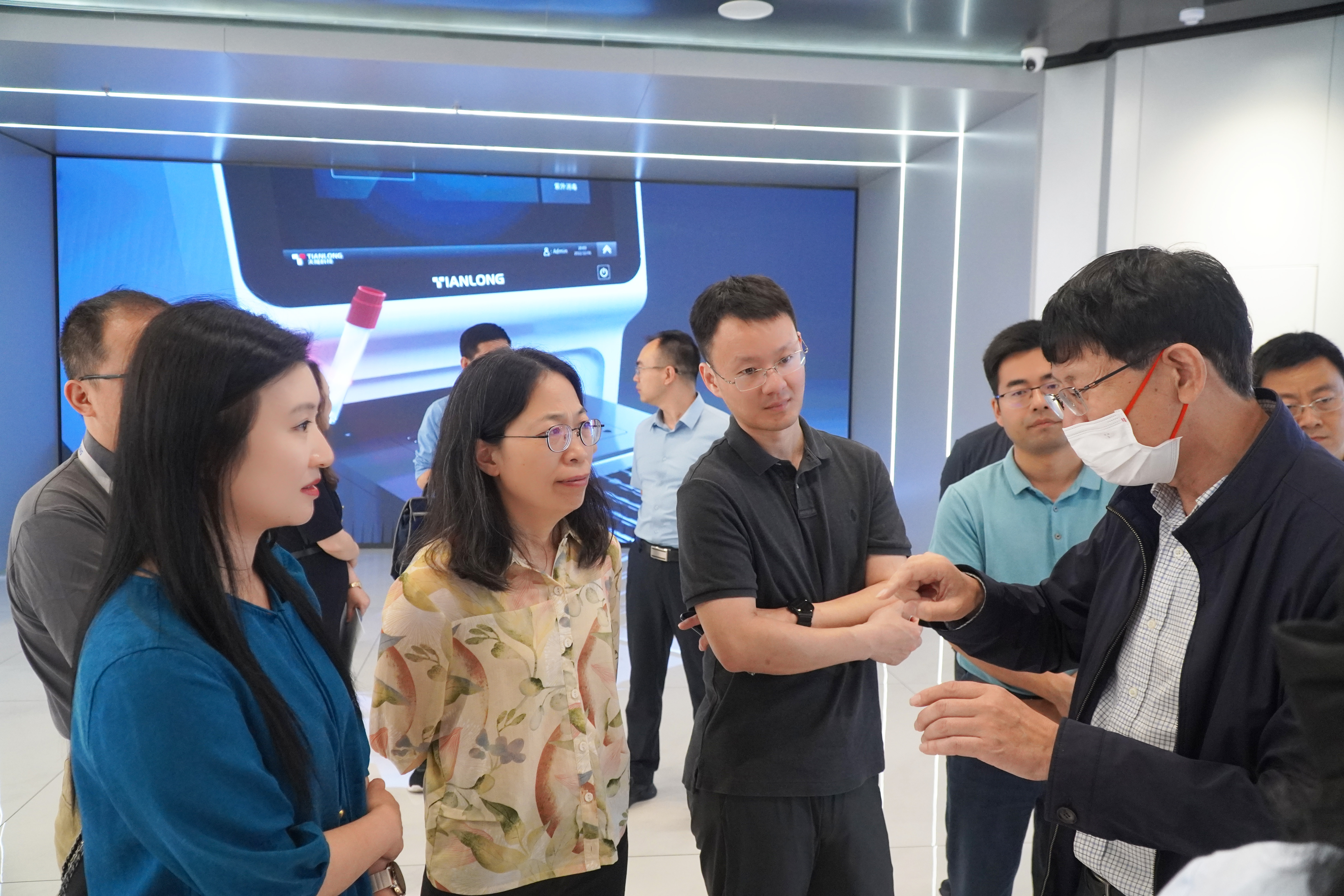 調(diào)研過程中,近期入選中關(guān)村論壇“十大首發(fā)高端創(chuàng)新產(chǎn)品”的天隆Panall 8000全自動分子診斷系統(tǒng)因其集約高效、操作便捷、多重聯(lián)檢、多重防護的特點吸引了調(diào)研組駐足參觀與交流。彭年才教授及公司相關(guān)人員向調(diào)研組詳細(xì)介紹了Panall 8000獲證情況、操作方法、用途領(lǐng)域等。李靜莉所長一行對天隆科技的發(fā)展成就、科創(chuàng)能力等給予了充分肯定,她表示,天隆科技擁有的多項自主知識產(chǎn)權(quán)及完善的產(chǎn)品體系對于醫(yī)療行業(yè)升級發(fā)展及實現(xiàn)我國高端醫(yī)療設(shè)備自主可控等都具有重要意義,期待天隆科技可以持續(xù)技術(shù)創(chuàng)新,繼續(xù)引領(lǐng)行業(yè)高質(zhì)量發(fā)展。