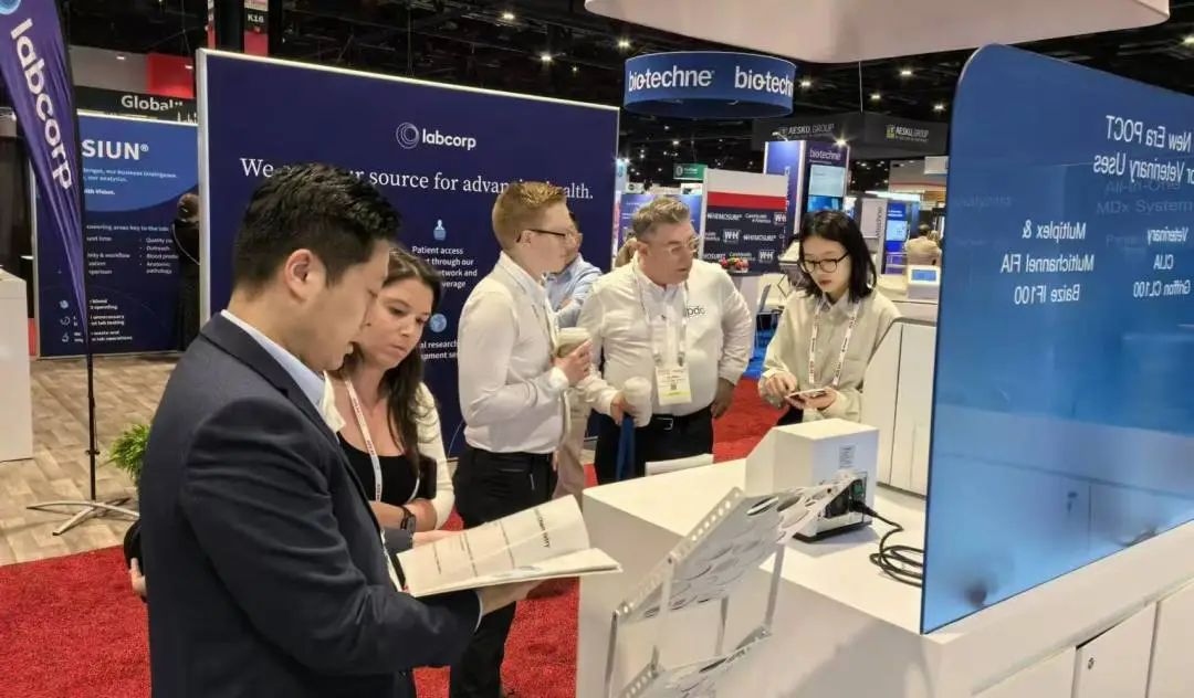 本次展會天隆科技及科華生物展示了其最新研發成果,涵蓋分子、生化、免疫以及POCT等多個領域的產品和解決方案,吸引了來自全球的廣泛關注,其中就包括大量來自美洲的客戶。展位現場人潮涌動,氣氛熱烈。美洲市場客戶對天隆和科華的新產品表現出了濃厚的興趣,尤其關注其在各類檢測場景中的應用潛力。除了拓展新客戶之外,天隆科技與科華生物還利用此次展會契機,與多家老客戶進行了面對面的深入交流,加深了公司對當前市場需求的理解,也為未來產品的開發和市場拓展奠定了堅實基礎。