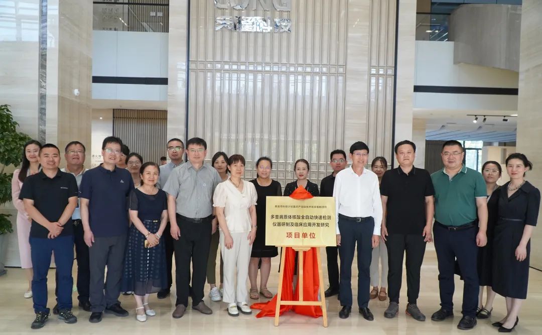 8月13日,由天隆科技牽頭主持的多重病原體核酸全自動快速檢測儀器研制及臨床應(yīng)用開發(fā)研究項(xiàng)目在天隆科技產(chǎn)業(yè)園正式啟動。該項(xiàng)目由西安市科技局審批,屬于西安市科技計(jì)劃重點(diǎn)產(chǎn)業(yè)鏈技術(shù)攻關(guān)集群項(xiàng)目,由西安天隆科技有限公司、西安交通大學(xué)第二附屬醫(yī)院、陜西省人民醫(yī)院、西安交通大學(xué)共同參與。