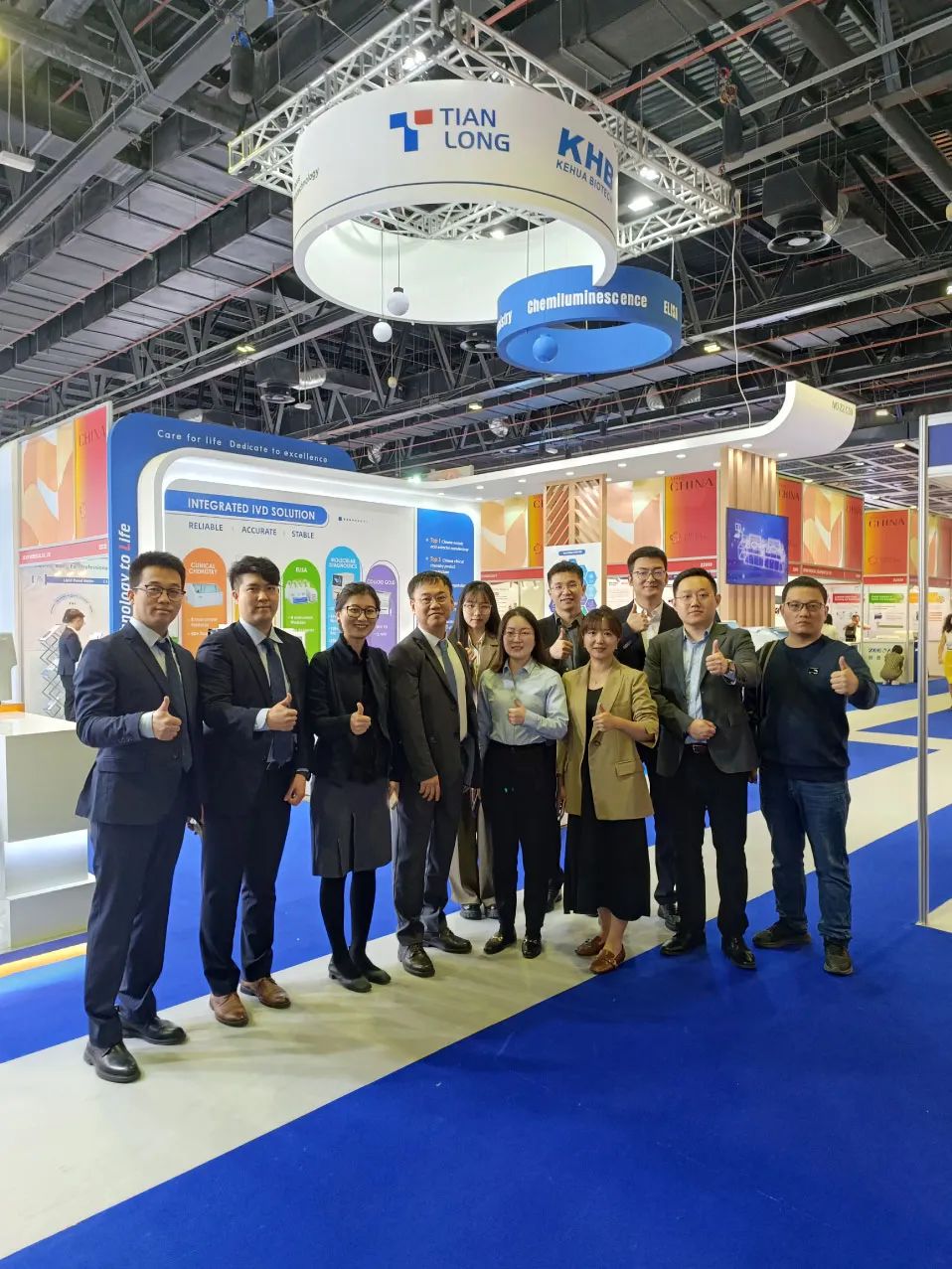 此次展會(huì),天隆科技攜手科華生物及焦點(diǎn)生物聯(lián)合參展,展出包含生化診斷、免疫診斷、分子診斷等在內(nèi)的體外診斷(IVD)整體解決方案。展會(huì)現(xiàn)場(chǎng),多元化的產(chǎn)品矩陣,更完善的解決方案聚焦全場(chǎng)目光,吸引眾多專業(yè)人士駐足交流。