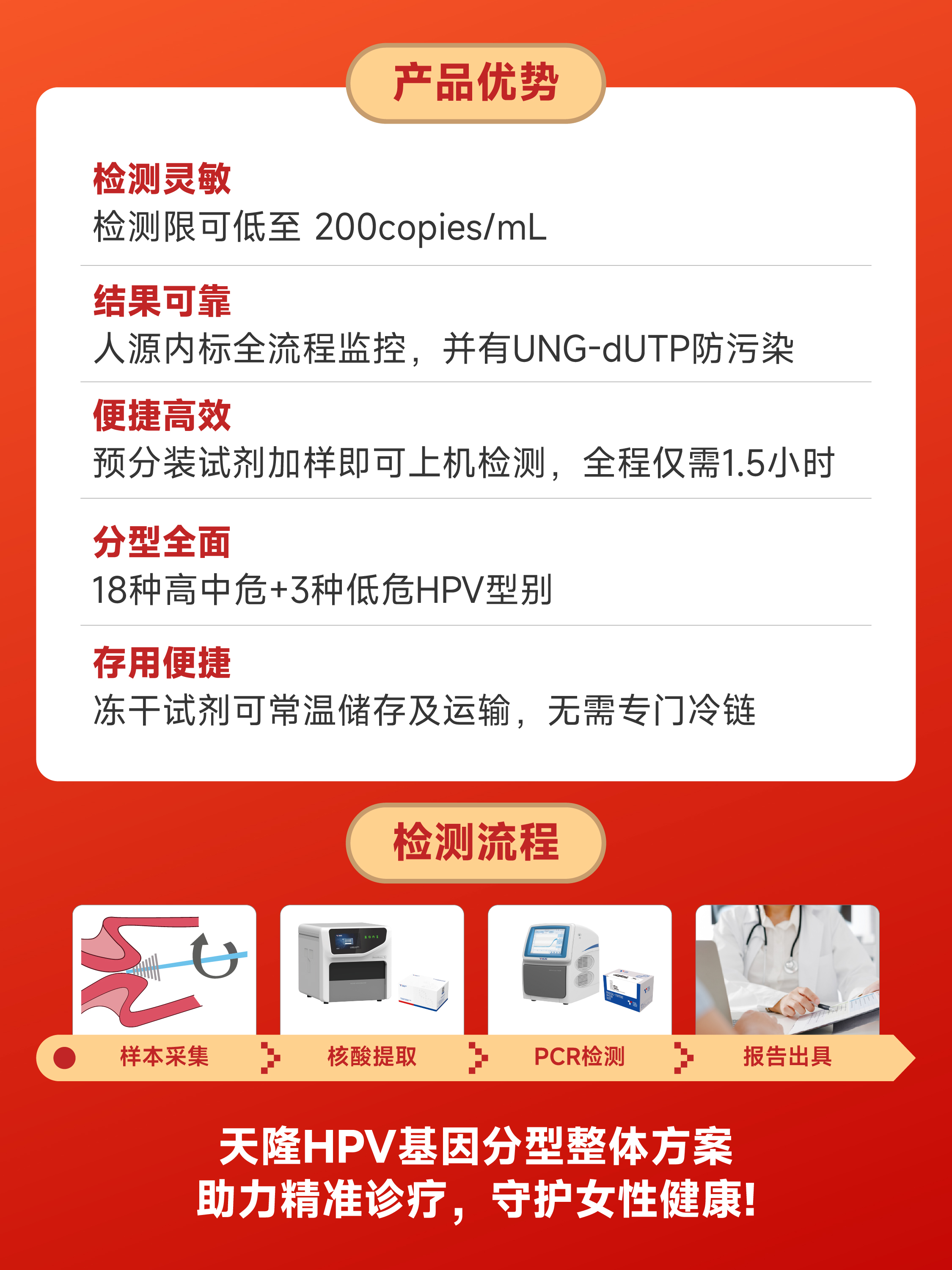 該產(chǎn)品檢測(cè)高效、靈敏度高、結(jié)果可靠、操作便捷,能為HPV相關(guān)疾病的輔助診斷提供重要依據(jù),助力早期精準(zhǔn)診療,守護(hù)女性健康。