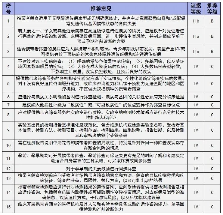 參照國際相關指南及共識,數十位專家學者經充分探討,審慎編寫及多次修改,針對孕前及孕早期常見隱性單基因遺傳病的攜帶者篩查,最終形成如下15條核心意見